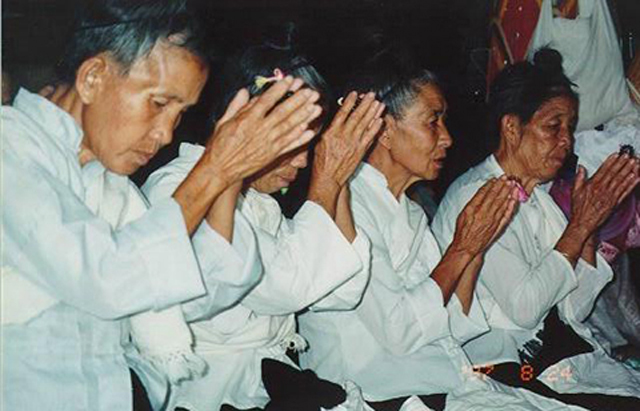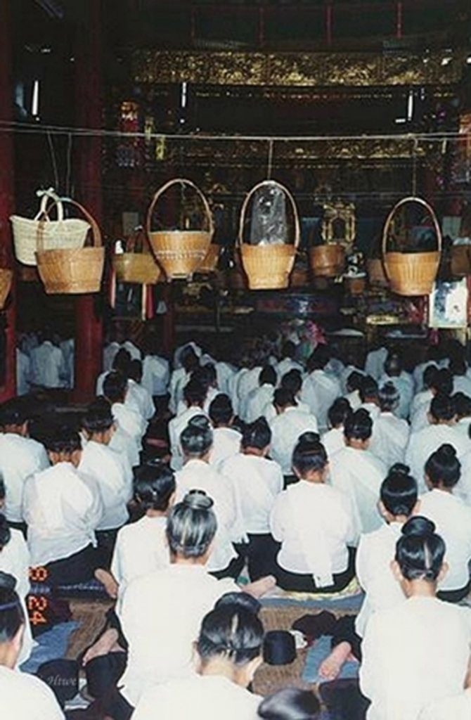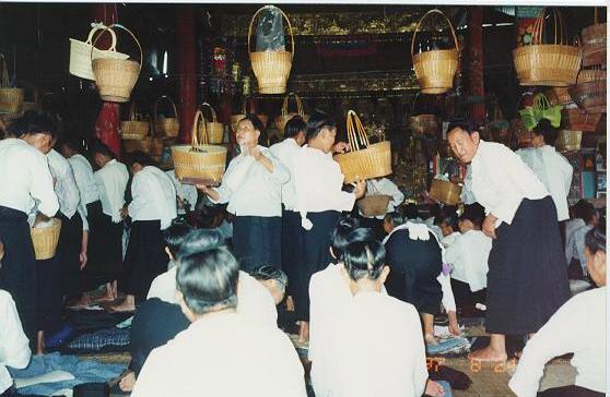 Shan adopted Buddhism in AD 71. Later, Shan have adopted Theravada Buddhism from the Burmans. Theravada is one of the eighteen Nikāya schools that formed early in the history of Buddhism. These developed in India during the century after the death of the Buddha. Almost all Shan are Buddhists. That is why they used to say, “Shan are Buddhist.” They believe that right thinking, ritual sacrifices, and self-denial will enable the soul to reach nibanna (a state of eternal bliss) (ၼိၵ်ႉပၢၼ်ႇ). They also teach reincarnation, and each person’s future well-being is determined by their behavior (deeds) in a previous life. The fate of a person depends on the merit (karma ၵၢမ်ႇ) he’s gained in his past life. All intentional actions, good or bad, will lead to future results. Thinking of doing a bad thing is also bad karma. Good action is referred to as Kusala (ၵူႉသူဝ်ႇ). Bad action is Akusala (ဢႃႉၵူႉသူဝ်ႇ). It brings fortune by giving alms to monks and listening to sermons from monks. People usually give in the hope of getting return. A large gift is more auspicious than a small gift. If a person has nothing to give, he can act auspiciously by simply rejoicing at another person’s giving by expressing Sadhu (သႃႇထု) (meaning it is good). Past Karma also offers perhaps the only religiously satisfactory explanation of the suffering of the people who have done nothing to deserve it in this life. Whatever happens, people always point to Karma. In the Mahayana tradition, merit is often transferred to all sentient beings. The basic Buddhist teachings are the “Four Noble Truths” and “Eightfold Path.”
