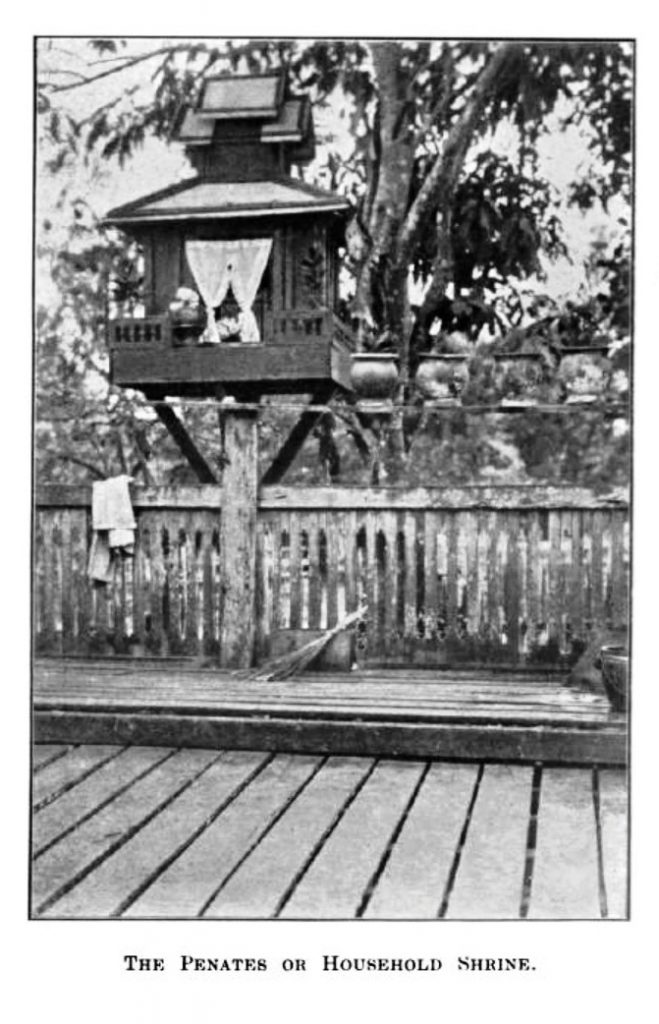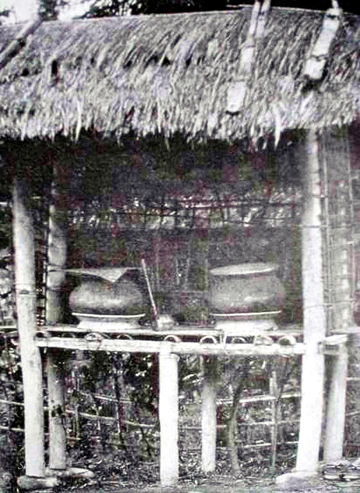 The death of a Shan woman with her unborn child in the womb was the greatest misfortune. It was believed that the spirit of the dead woman would become a malignant ghost who might return to haunt her husband’s home and torment the husband unless precautions were taken to keep her spirit away. When the bodies of the deceased were being removed from the house, part of the wall on the side of the house was taken down, and the bodies of the dead woman and her baby were lowered to the ground through the aperture. The hole through which the bodies had passed was immediately filled with new mats so that the ghost could not know how to return. When any person had been killed by lightning, the body of the deceased was not placed in a coffin but wrapped in a fine mat. The grave was dug in the form of a well, and the corpse was placed in it in a standing position. The clothes left by the one who died of a natural death may later be worn by relatives or friends, but the clothes of those persons who were killed by murder, lightning, suicide, or accident were generally buried with the body.[44]