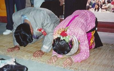 Passing in front of the parents or elders without bending the body low / Bend the body low and pass slowly in front of the parents and elders