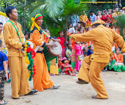 Folk songs are usually sung by a solo person without musical accompaniment. But sometime it is accompanied by flute or violin. There is no folk song for group singing. Most of the musical instruments are made of bamboo, goblet, clay, single or multiple string instruments.